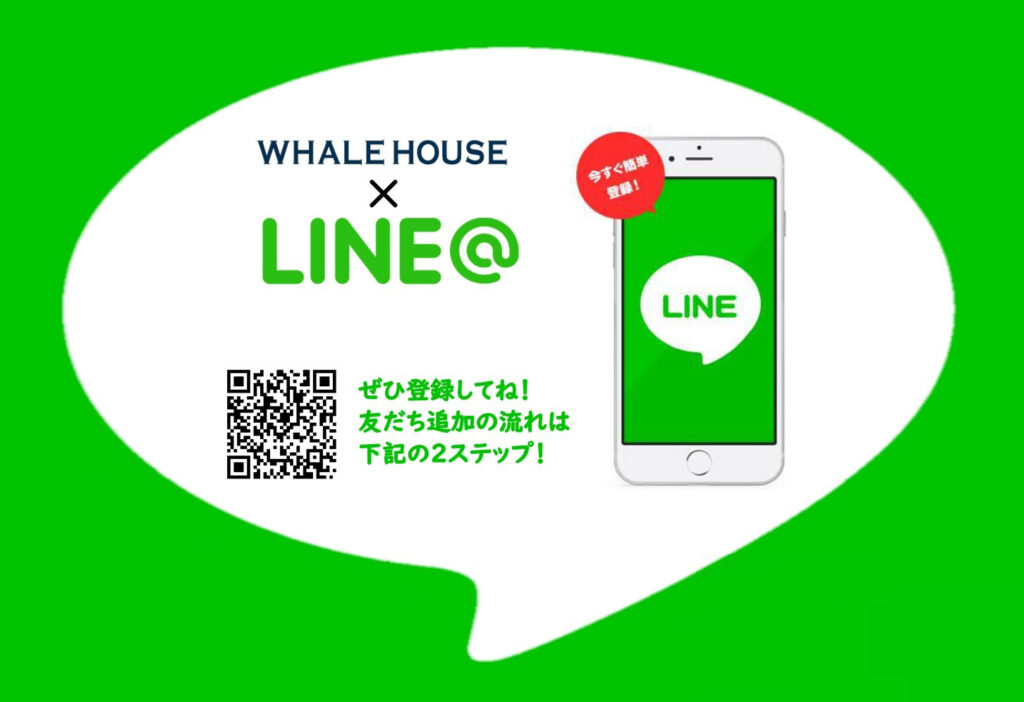 WHALEHOUSEではLINEでのお問い合わせが可能となっております。営業時間等、気にする事なくご相談して頂けます。